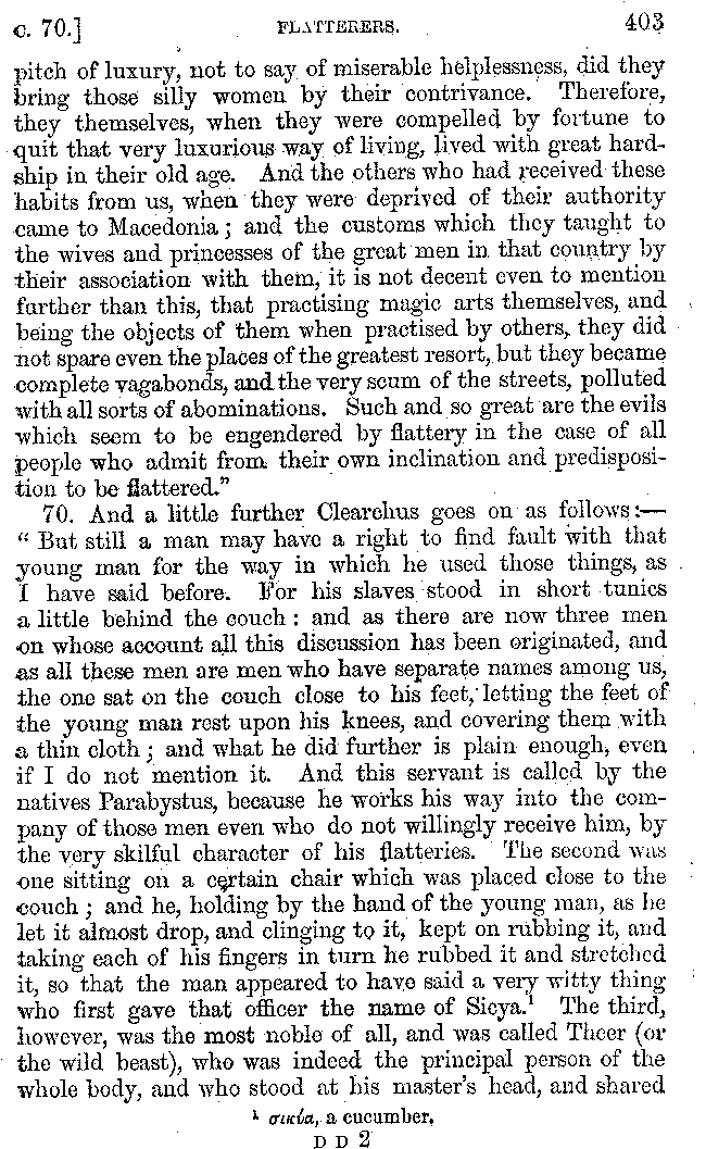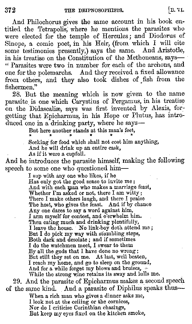 | Tragedy—Fishmongers—Misconduct of Fishmongers—Use of particular Words—Use of Silver Plate—Silver Plate—Golden Trinkets—Use of Gold in different Countries—Parasites—Gynæconomi—Parasites—Flatterers of Dionysius—Flatterers of Kings—Flattery of the Athenians—Flatterers—The Tyrants of Chios—The Conduct of Philip—Flatterers and Parasites—The Mariandyni—Slaves—Drimacus—Condition of Slaves—Slaves—Banquets—The Effects of Hunger—The Mothaces—Slaves under the Romans—The Fannian Law | 353-432 |