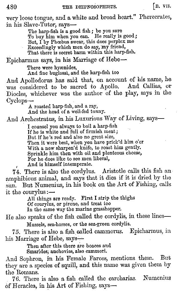 | The Phagesia—Fish—Epicures—Fish—Cooks—Sharks—Fish—Glaucus—Eels—The Tunny-Fish—Fish—Pike—Fish—The Polybus—Fish | 433-521 |