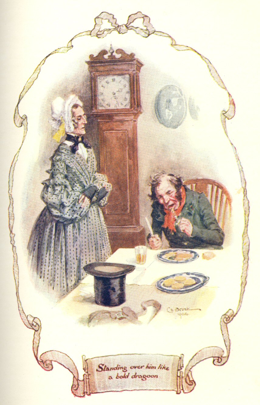 “Elegant economy!” How naturally one falls back into the phraseology of Cranford! There, economy was always “elegant,” and money-spending always “vulgar and ostentatious”; a sort of sour-grapeism which made us very peaceful and satisfied. I never shall forget the dismay felt when a certain Captain Brown came to live at Cranford, and openly spoke about his being poor—not in a whisper to an intimate friend, the doors and windows being previously closed, but in the public street! in a loud military voice! alleging his poverty as a reason for not taking a particular house. The ladies of Cranford were already rather moaning over the invasion of their territories by a man and a gentleman. He was a half-pay captain, and had obtained some situation on a neighbouring railroad, which had p. 6been vehemently petitioned against by the little town; and if, in addition to his masculine gender, and his connection with the obnoxious railroad, he was so brazen as to talk of being poor—why, then, indeed, he must be sent to Coventry. Death was as true and as common as poverty; yet people never spoke about that, loud out in the streets. It was a word not to be mentioned to ears polite. We had tacitly agreed to ignore that any with whom we associated on terms of visiting equality could ever be prevented by poverty from doing anything that they wished. If we walked to or from a party, it was because the night was so fine, or the air so refreshing, not because sedan-chairs were expensive. If we wore prints, instead of summer silks, it was because we preferred a washing material; and so on, till we blinded ourselves to the vulgar fact that we were, all of us, people of very moderate means. Of course, then, we did not know what to make of a man who could speak of poverty as if it was not a disgrace. Yet, somehow, Captain Brown made himself respected in Cranford, and was called upon, in spite of all resolutions to the contrary. I was surprised to hear his opinions quoted as authority at a visit which I paid to Cranford about a year after he had settled in the town. My own friends had been among the bitterest opponents of any proposal to visit the Captain and his daughters, only twelve months before; and now he was even admitted in the tabooed hours before twelve. True, it was to discover the cause of a smoking chimney, before the fire was lighted; but still Captain Brown walked upstairs, nothing daunted, spoke in a voice too large for the room, and joked p. 7quite in the way of a tame man about the house. He had been blind to all the small slights, and omissions of trivial ceremonies, with which he had been received. He had been friendly, though the Cranford ladies had been cool; he had answered small sarcastic compliments in good faith; and with his manly frankness had overpowered all the shrinking which met him as a man who was not ashamed to be poor. And, at last, his excellent masculine common sense, and his facility in devising expedients to overcome domestic dilemmas, had gained him an extraordinary place as authority among the Cranford ladies. He himself went on in his course, as unaware of his popularity as he had been of the reverse; and I am sure he was startled one day when he found his advice so highly esteemed as to make some counsel which he had given in jest to be taken in sober, serious earnest.