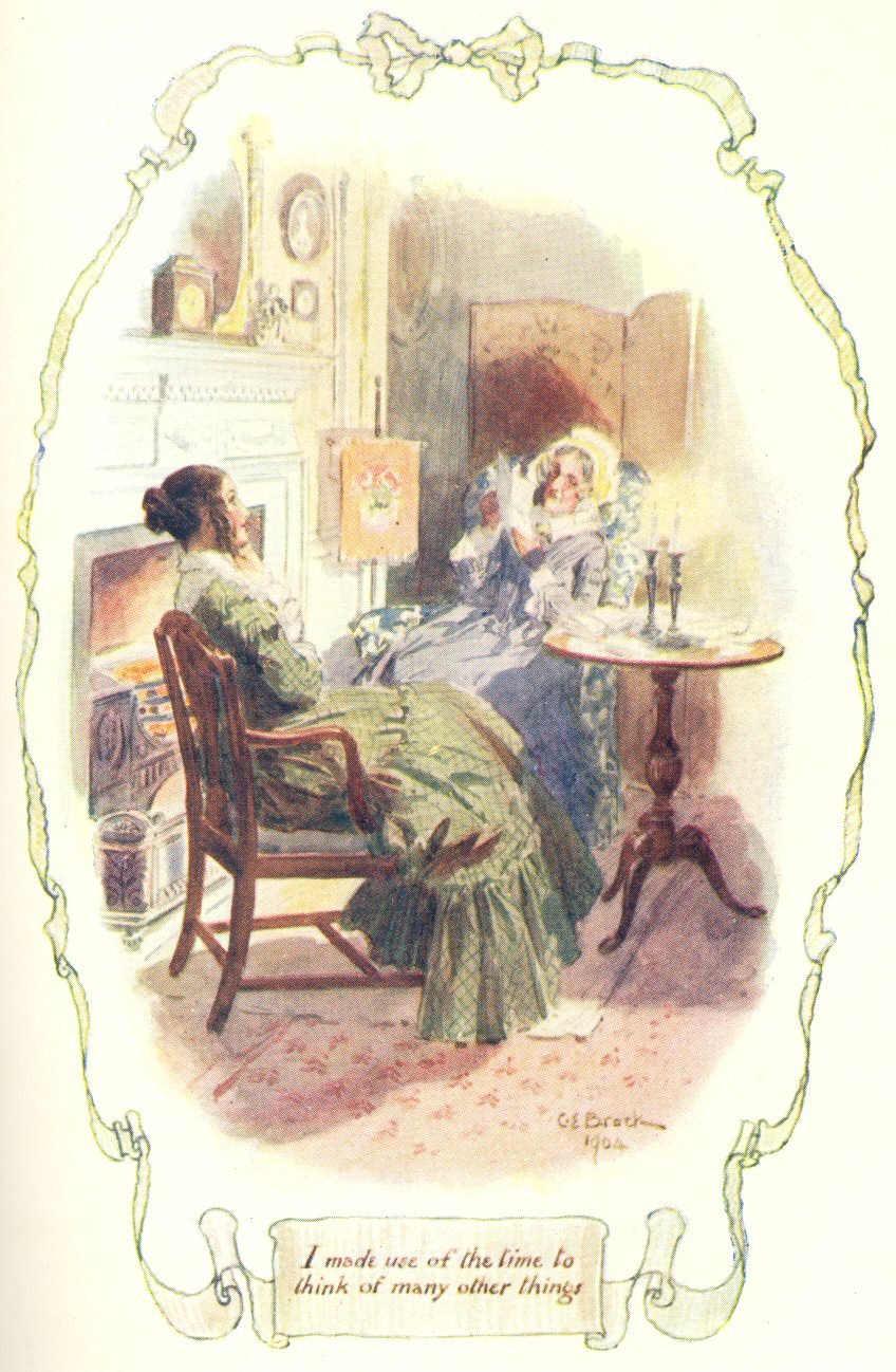 p. 12It was very good of Miss Jenkyns to do this; for I had seen that, a little before, she had been a good deal annoyed by Miss Jessie Brown’s unguarded admission (à propos of Shetland wool) that she had an uncle, her mother’s brother, who was a shop-keeper in Edinburgh. Miss Jenkyns tried to drown this confession by a terrible cough—for the Honourable Mrs Jamieson was sitting at a card-table nearest Miss Jessie, and what would she say or think if she found out she was in the same room with a shop-keeper’s niece! But Miss Jessie Brown (who had no tact, as we all agreed the next morning) would repeat the information, and assure Miss Pole she could easily get her the identical Shetland wool required, “through my uncle, who has the best assortment of Shetland goods of any one in Edinbro’.” It was to take the taste of this out of our mouths, and the sound of this out of our ears, that Miss Jenkyns proposed music; so I say again, it was very good of her to beat time to the song.