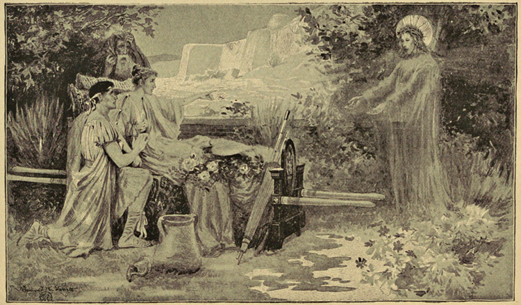 The period of "Let Us Follow Him" is that of the death of Christ. Antea, the wife of a Roman patrician, ill with terrible visions, is advised by a physician[Pg vi] to seek the air of Jerusalem. There she and her husband meet Pilate, who tells them of the doctrine of the Nazarene, Jesus, and his condemnation to death. They are present at the Crucifixion, and Antea gives honor to the condemned Nazarene, saying, "Thou art Truth."