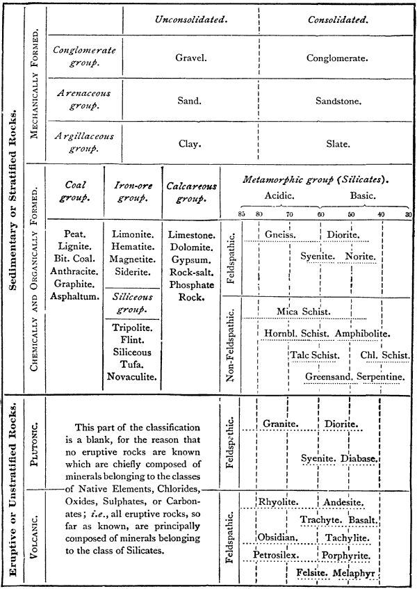 Our work in this short course will be limited to the first two divisions,—i.e., to dynamical and structural geology. We will attempt, first, a general sketch of the forces now concerned in the formation of rocks and rock-structures; and after that we will study the composition and other characteristics of the common minerals and rocks.
