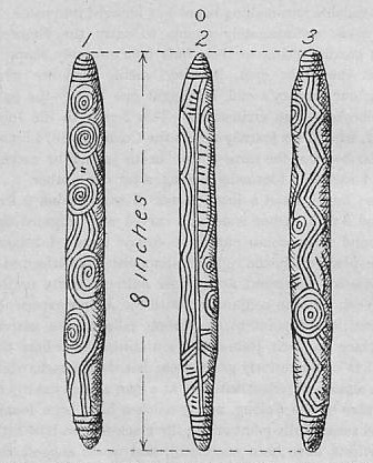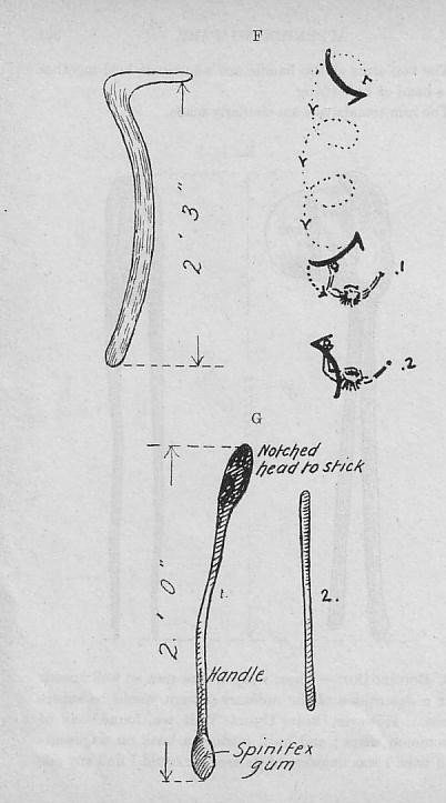 “Bardies” are large white grubs—three or four inches long—which the natives dig out from the roots of a certain shrub. When baked on wood-ashes they are said to be excellent eating. The natives, however, prefer them raw, and, having twisted off the heads, eat them with evident relish.