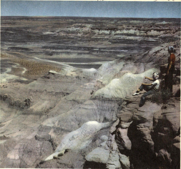 As the young lady drove off with a gay wave of her hand and “I think you’re mean” tossed over her shoulder, the ranger turned to us with a rueful smile. “Happens every day,” he said. “You can’t blame people for wanting to take home a souvenir of the Petrified Forest, and the stuff is so pretty that kids, especially, just can’t help but want to pack it off. And, with so much of it here, it’s hard for them to understand that it would soon be gone, particularly along the roads and trails, if everyone carried off a handful or two.”