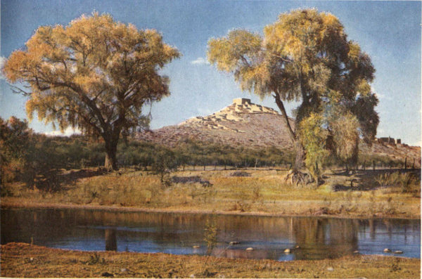The Painted Desert formed a barrier behind which the early Hopi people withdrew to establish their famed mesa-top villages, including Oraibi which has been continuously occupied since about 350 years before the discovery of America. These people still live in their several mesa-top villages, their reservation surrounded by that of the Navajo, their former enemies, who now lead a peaceful, semi-nomadic life.