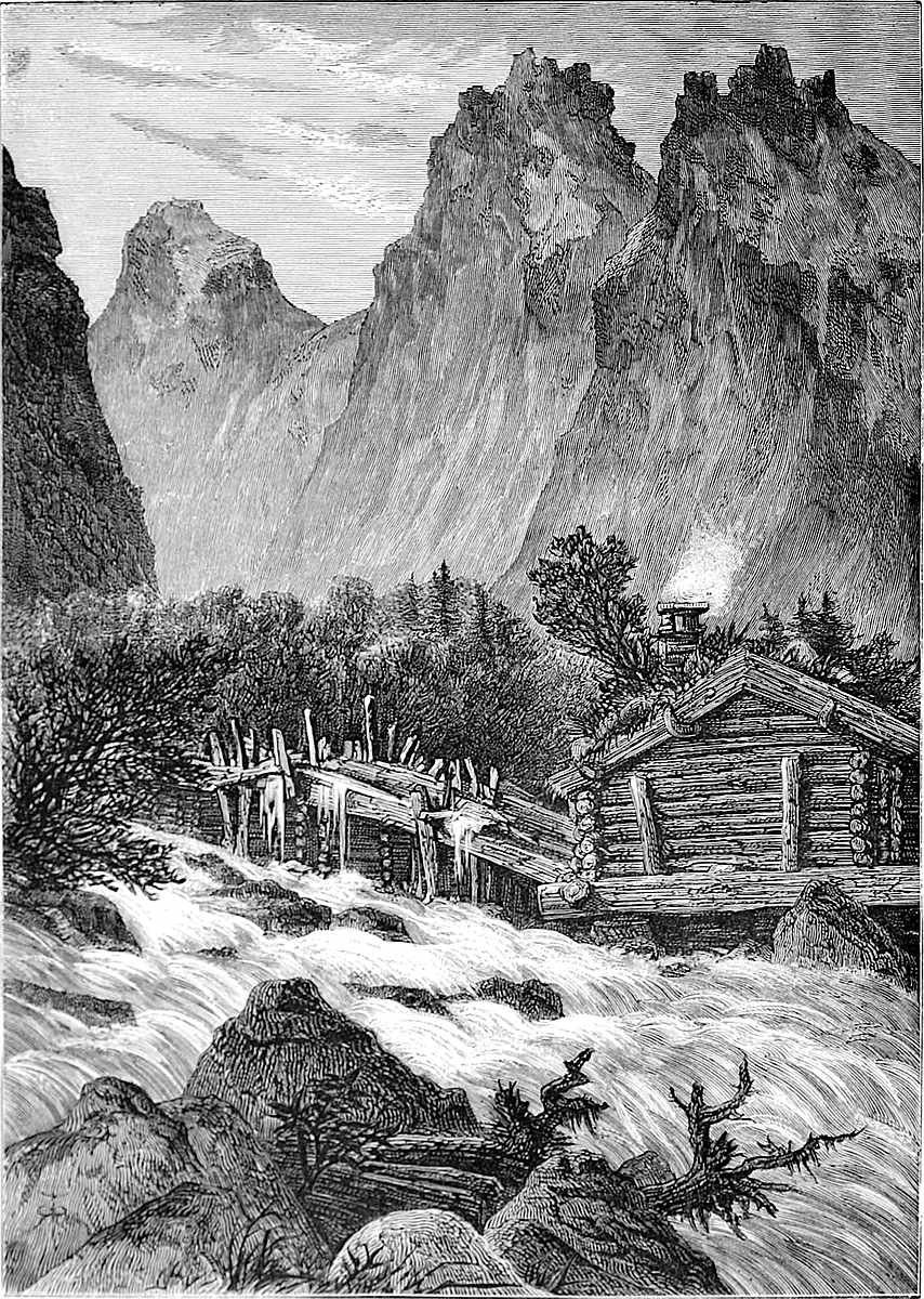 How different is it now! Thanks to Messrs. Wilson, steamers take us thither almost to the hour, unless, indeed, the clerk of the weather should connive with old Neptune to teach us a lesson, by reminding us that the elements are not yet to be ordered about entirely as we like. English visitors commenced about 1824; Lord Lothian, Lord Clanwilliam, and Lord H. Kerr, 1827; Marquis of Hastings, 1829; and in 1830 we have Elliott’s account of Norway. Those were early days, when the bönder were astonished, and could hardly believe their own eyes, when Englishmen went down with a piece of thread and a kind of coach-whip to kill a salmon of thirty pounds; or, again, when the first flying shot opened a new world to them. Those were the times when members of the Storthing (or Parliament) appeared in the costume of their own district, with belts, tolle-knives, &c. They were not so eager to grasp at civilisation as the Japanese, who simultaneously took to elastic boots, tall black hats, and the English language within a year. No; they are a contented people, with no desire for change, or to have it thrust upon them, until they discover that they can make money of the delighted foreigner, who, elevated by the grandeur of the mountain scenery, grows more warm-hearted, kind, and generous than ever. Then the Norseman becomes rabid and exacting; but the provinces (thank Heaven!) still preserve their primitive simplicity.
