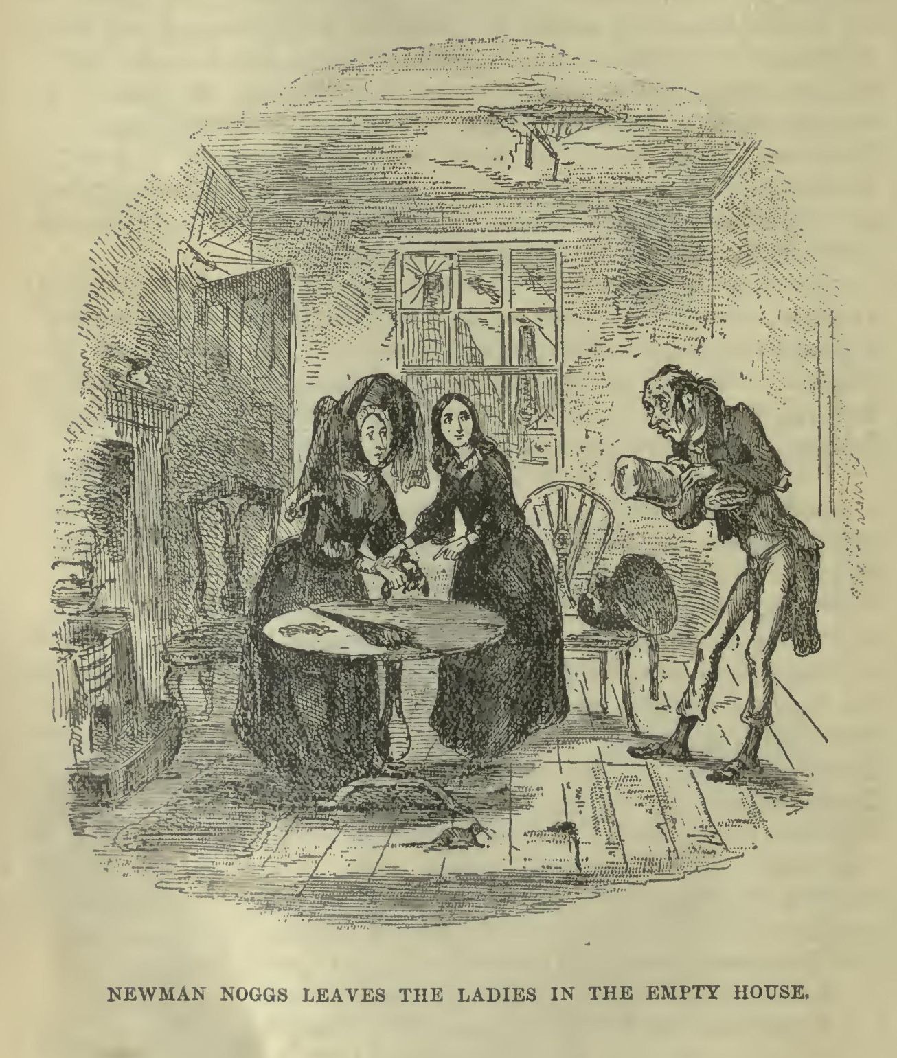 ‘Yes, poor devil!’ replied Ralph, drawing on his gloves. ‘Though Newman Noggs kept his horses and hounds once.’