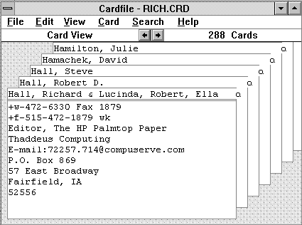 HP is also including TRANSFILE WIN 200 with the 4 Mb Palmtop. This utility operates on PCs running Windows 3.1, 3.11, 95 and NT 4.0. It provides drag and drop transfer of files from your 200LX to your PC. Connect the Palmtop to the desktop with an HP serial cable, start Filer on the 200LX, start Transfile WIN 200 on the desktop and you can back up your entire 200LX with a click of your mouse. HP is offering this utility on HP's World Wide Web site, (www.hp .com/go/freebackup) free of charge to all 200LX users.