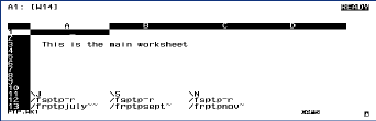 Even though this feature is not available in the version of 1-2-3 on the HP Palmtops you can simulate something like this by hooking several worksheets together with Lotus macros. The simulated "workbook" will consist of a main worksheet and several more worksheets that are hooked to this main sheet .