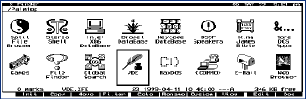 Screen 1 shows the XF starting display on my palmtop. This is a GUI launcher that can use over 200 icons. The icons on my Palmtop screen are set up to launch my favorite programs, my most-frequently-used databases and to open other program folders. This setup is substantially different from the default Palmtop setup that comes in the X-Finder (XF) archive.