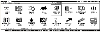 The order of icons on the screen is alphanumeric by default, but can be changed in the FINDER.ENV file or from the menu. Reverse date/time sort works best for me. Icons are contained in the C:\_DAT\ICON.LZH file and are used directly from the archive. Each icon shares the name of the associated X-File. For example, if you have a file called FORTH.XFE that starts HP-Pygmy Forth, then the icon would be FORTH.ICN. Icons can also be associated with file extensions. A collection of icons to use with XF is available as XICONS.ZIP.