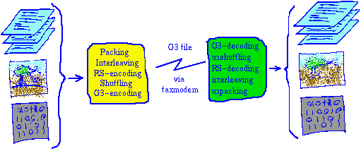 g3net has two operating modes: Note that the ``fax'' includes a lot of redundancy, so that even if up to 30% of fax lines are lost/corrupted, it is possible to reconstruct the original document. Transferring files with g3net is extremely simple: