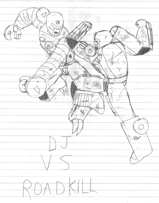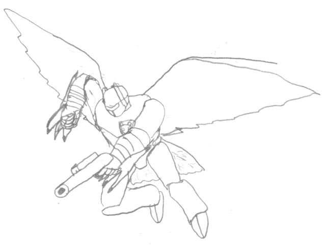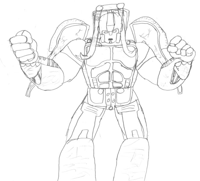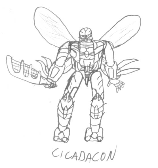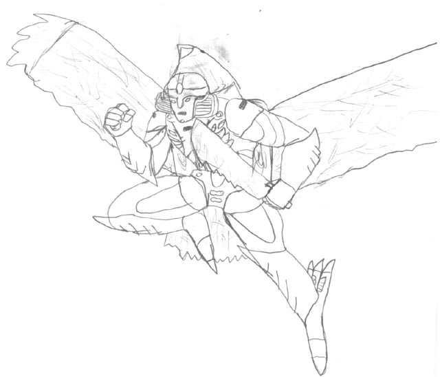 - Cyclonus - my first Transformers toy. I drew him only looking at my stickerless toy so he doesn't look like his toy or comic self (30k, 7-21-00)