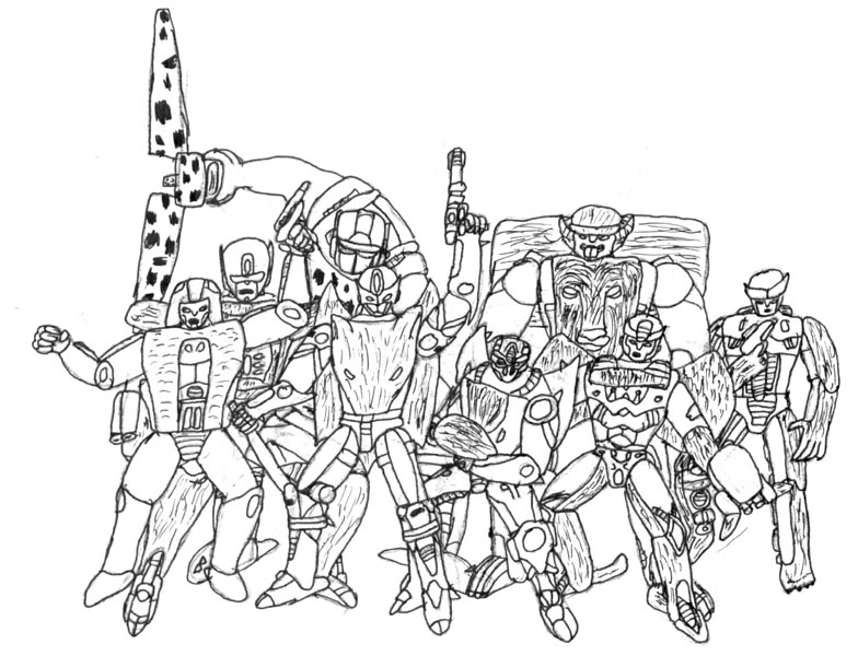 - Maximal Group - rinted out the pic and inked over the art. Also added Grimlock's spots and more fur lines on the animal bits (105k, 6-26-00)