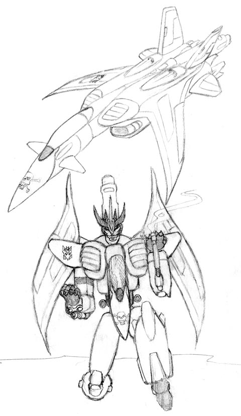 1. Bandit - a character that I created on Transformers 2005 Mush. His name is Bandit. He is a Decepticon seeker with aspirations of leadership. This is a concept sketch in pencil. (60k, 1-24-01)