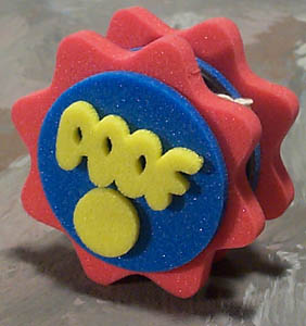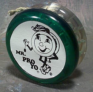 * - "Poof" Yo-yo - a cheap plastic yoyo encased in a foam shape of an explosion... I think... Also says "Poof" on each side. Plays horribly, and even when you get it to work, it has too much resistance and not enough inertia to keep spinning. Nice in a collection, though. ;-)