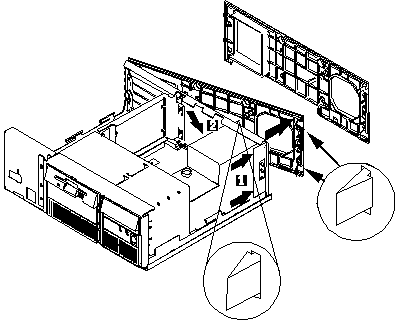 This is a little more involved than the 76 PSU, but still simple (after stripping 54+ 9577 systems, it's all too clear!). Open the case. Remove the rear bezel by prying the two catches between the corner of the case and the PSU. Undo the catch on the inside of the rear of the case (between the PSU and the riser card). The entire rear bezel will now pivot on two tabs that are on the side opposite the PSU.