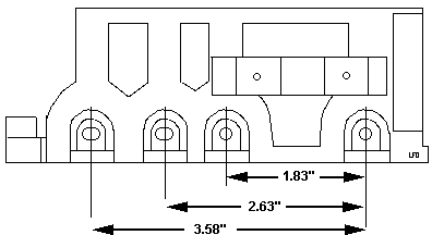 Dimensions are relative to the end AWAY from the SCSI connector. The material is 1/2" aluminum angle from Ace Hardware, cut to 4.5" long. I "flattened" the angle bracket to show the relations between the holes. Holes are 5/32".