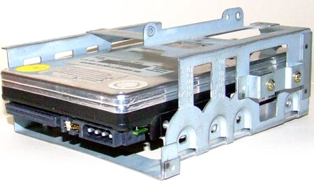 I finally took matters into my own hands... Took 4.5" lengths of 1/2" aluminum angle and drilled some 5/32" holes. Note the mounting hole for the left end (farthest from the SCSI connector) is the same distance as the old 0661 HD. Oddly, the spacing between that hole and the first screw for the new(er) HD is 1.75", and the second HD mounting hole is 1.75" past that... Odd...