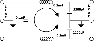 It has an EMI filter, rated 115/250v, 10A at 50/60Hz, 40 degrees C.