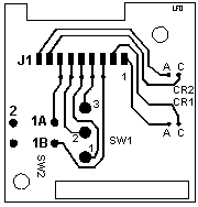 1. Note whether the power LED is on or off. 2. Disconnect the adapter's ac power cord from the electrical outlet. 3. Disconnect the interface cable from the LAN. 4. Remove the top cover screws and tip the cover back. If the power LED was On at the start of the proceedure, go to Step 7. 5. Plug the adapter's ac power cord into an electrical outlet. 6. Check the voltages on CR2: Connect red lead to A, black lead to C (gnd). Voltage should be between 1.6 and 3.0v DC. If voltage is correct and the power LED does not turn on, replace the operator panel board. See "Operator Panel Replacement". If voltage is not correct, replace the 4033. Note: If the 4033 is replaced, you must delete all associations after removing it from the LAN. When a replacement 4033 is connected to the LAN, you must perform the configuration steps and establish new associations. 7. Unplug the adapter's AC power cord from the electrical outlet. 8. Disconnect the operator panel board connector. 9. Check for continuity: a. With the selector switch (SW1) positioned toward the J1 connector, test that points 2 and 3 show continuity, points 1 and 2 are open. b. With SW1 positioned away from the J1 connector, test that points 1 and 2 show continuity, points 2 and 3 are open. c. With the leads touching the two active poles of the reset button SW2) (1A and 1B on image), there should be continuity when the button is pushed. If the button is not pushed, 1A to 1B should be open. FAIL If continuity is not correct in any of the above, replace the operator panel board. PASS If all these tests are OK,