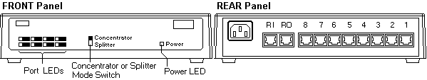 Concentrator/Splitter Allows to use the 8226 as a splitter when attached mode switch to another 8226 or as a concentrator. Instead of using a separate hub or concentrator port for each device you want to connect, you can attach the 8226 to an existing hub or concentrator port, set the switch on the front of the 8226 to "Splitter," and connect up to eight additional devices to the 8226