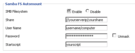 3. Enable the Samba FS Automount option. If new options do not appear the "Save Changes" and go back to the page.