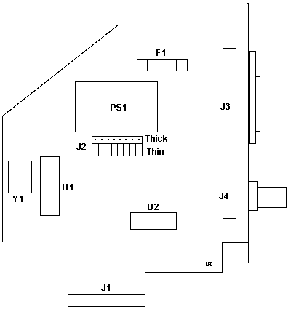 into the planar, and two standard SCSI narrow connectors (CN1, CN2) are