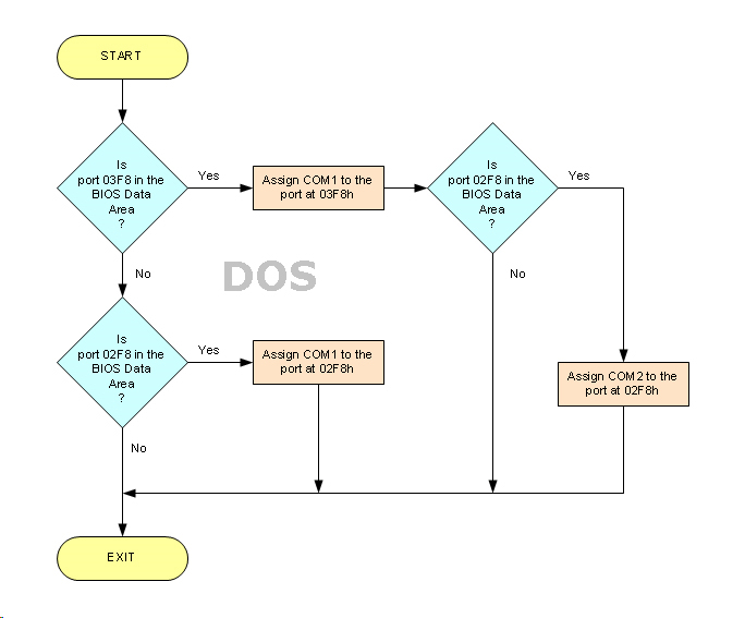 When DOS then loads, DOS notes the ports recorded in the BIOS Data Area, and assigns labels to them of COM1 and COM2 (see here).