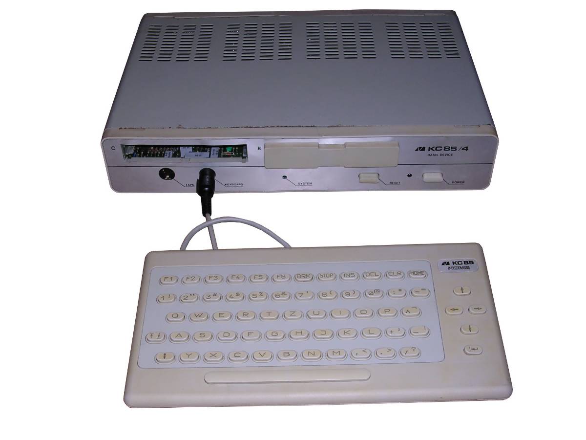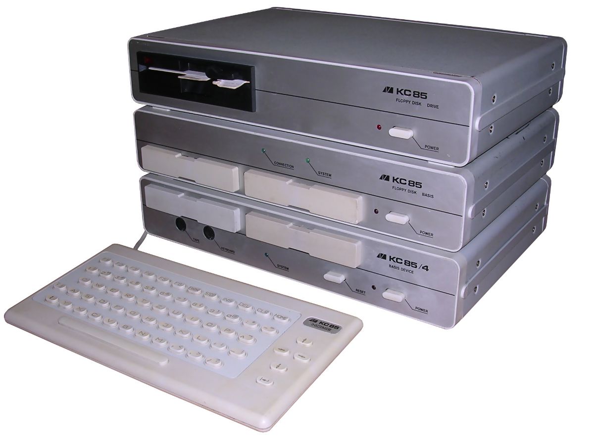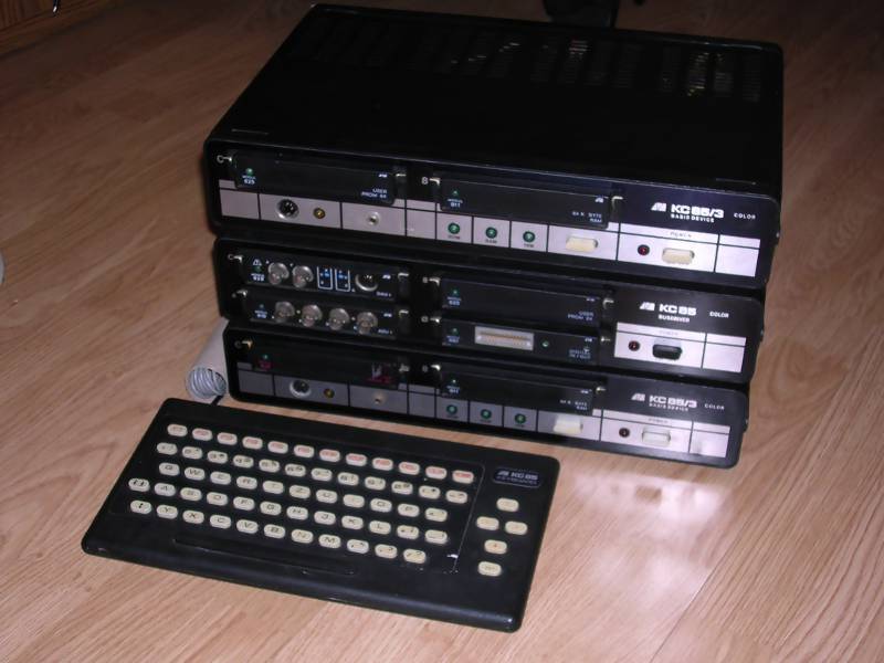 One of many East German tries to make a home computer. KC, standing for Kleincomputer (literally "small computer") was a Z80-based computer expandable by modules. Earlier KC 85/2 had only simple cassette-oriented system in ROM while /3 had also BASIC interpreter. ROM could be expanded by module too: there were assembly language development environments sold as ROM modules as well as FORTH language.