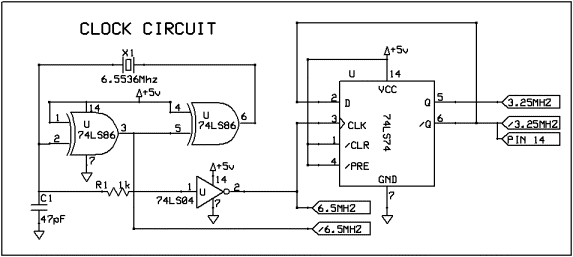 the CPU clock by the /6.5Mhz signal when the count reaches 8 it presets the Q