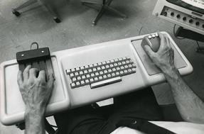 If you see an old Engelbart 1968 demo, you may notice that they are using technologies which became widely used 30 years later. Computer mouse, hypertext, remote collaborative text processing or screen sharing (analog version) are presented there working on a specific mainframe modified to support ca. 100MB of disk memory (yet I still don't know bytes or words, as they are often mistaken in modern documents because in 1960s byte had 7 or 8 bits and word was 24 bit, but grew to 25 bit when transferred specific ways), probably few CPUs and graphic terminal displays. You can see the original paper about the system. Another article from 1967 shows photo of early chord keypad prototype made of keyboard switches, it is called "pushbuttons".