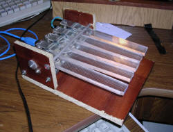 The construction is a bit different than Engelbart's, which can be seen in the Official Engelbart's NLS page: The key in original solution is pushing the button from below, the button is located above. This way the force to push a button is very small, but the key has to be very light not to push the button acting with force momentum. Engelbart used a thin pieces of flat metal, probably cut and rolled twice in one end to rotate on a shaft. There are two problems: One, if too bif gorce is uset, the metal may bent. Second, the springback is not very good. Because I had problems with cutting metal precisely (and not slashing hands during usage on sharp edges), I decided to use epoxy glass for keys and press the buttons located below the keys. Keys are quite thick (8mm) with 4mm holes for shaft. The epoxy glass is from old LCD. This glass also has quite nice engravings which prevent fingers from slipping on polished surface.