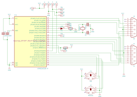 the code has been developed in about 2-3 hours, testing using Atari ST with TOS 1.x, and building a prototype on universal PCB took 2 times more :). The schematic is following (don't take it as 100% correct, better use pin description below):