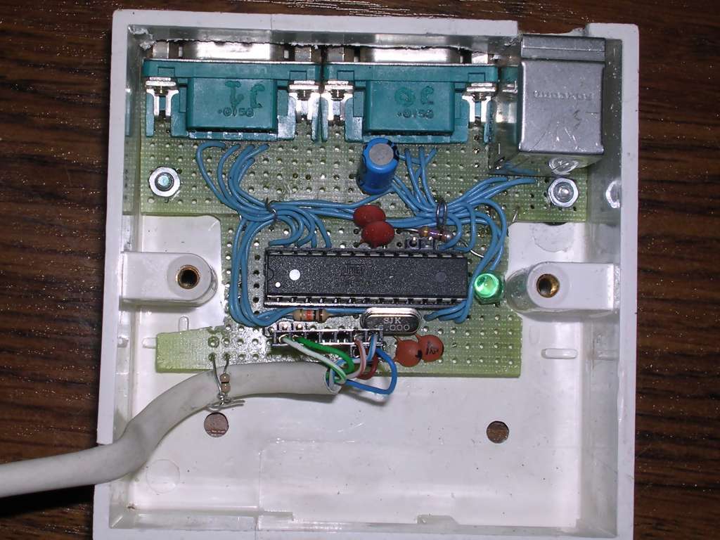 The prototype has been developed on Arduino Uno board with ATMega328 microcontroller, and code occupies about 10kB (I think it theoretically may be trimmed down to fit in ATMega8, but it requires some more thinking) leaving also some RAM free. It has been made as a device using universal PCB instead of etched one, and put into casing made of old LAN socket.