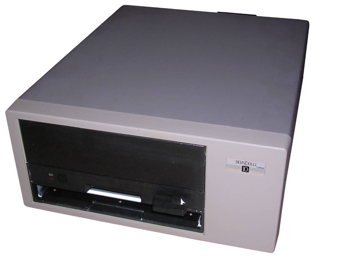 IOMega was a company famous of their Zip and JAZ drives, which allowed to store large amounts of data on a portable media. However, they haven't started with ZIP - the first IOMega product was called Bernoulli Box. Released in 1983, the Bernoulli box was a high-capacity magnetic drive with removable disk cartridges. It was 8-inch and allowed to store 10MB of data on an elastic platter in hardened cartridge. The principle of operation was revolutionary as of its time - instead of heads having constant contact with a disc, the Bernoulli disks used a cushion of air to maintain head right above the surface. This phenomenon, working on Bernoulli's principle, gave the name to the drive. The heads were loadable, and while hard drives used a contact heads with servo motors, Bernoulli drive used flying heads with voice coil mechanism, giving better tracking precision by using feedback to position the head over track.