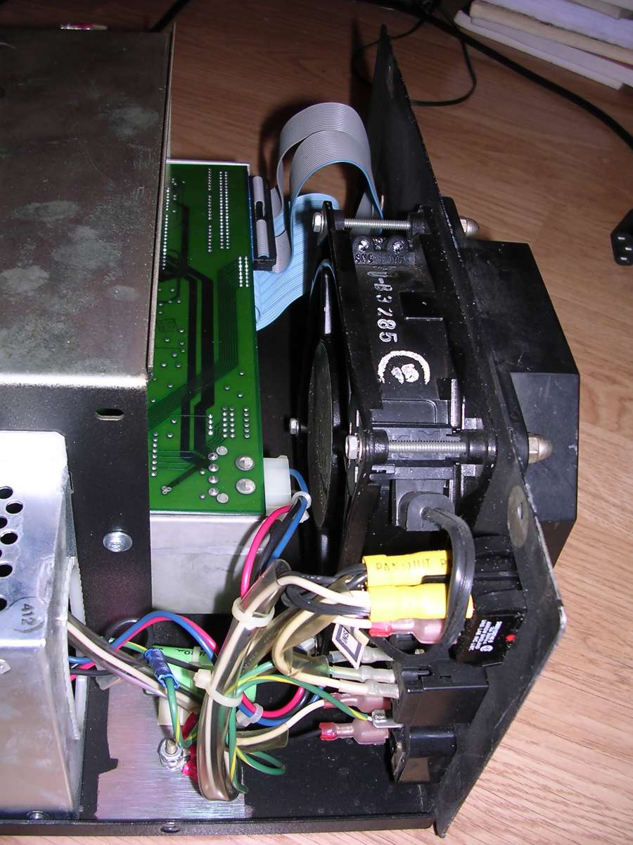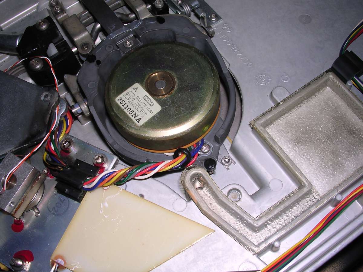Notice the voice coil mechanism with PCB and the pressure chamber with transparent plastic cover.