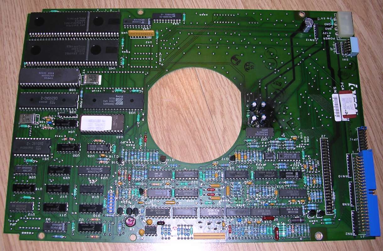 The drive has quite significant intelligence inside - there are numerous self-test routines in ROM, and serial port for diagnostics. Everything in fact is a Z80-based system, supported with glue logic and proprietary chips made for IOMega.