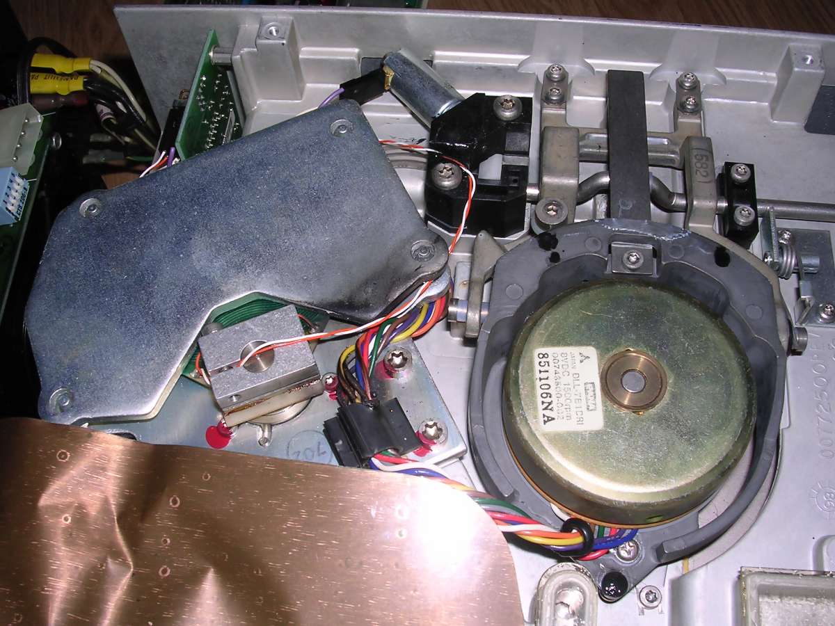 My unit's history is not known (bought on a flea market), but I found that it had an explosion inside - two Tantalum capacitors gave up and blown with fire, damaging part of regulator circuit (input chokes) and motor cables. I found parts of a cartridge inside - maybe it was damaged when the capacitors fired and there was a problem to remove it? The parts are various plastic shards, a complete disc (!) and a top sticker.
