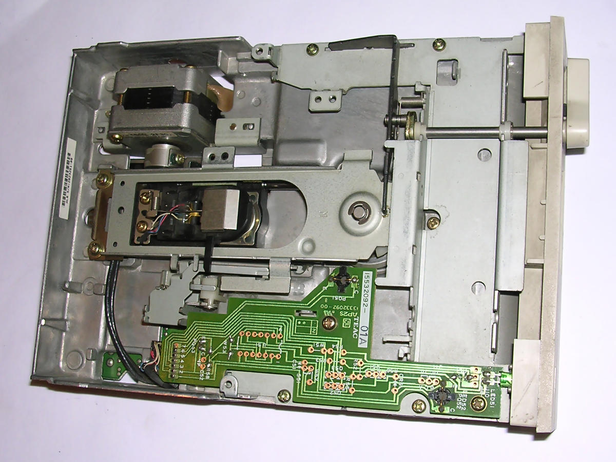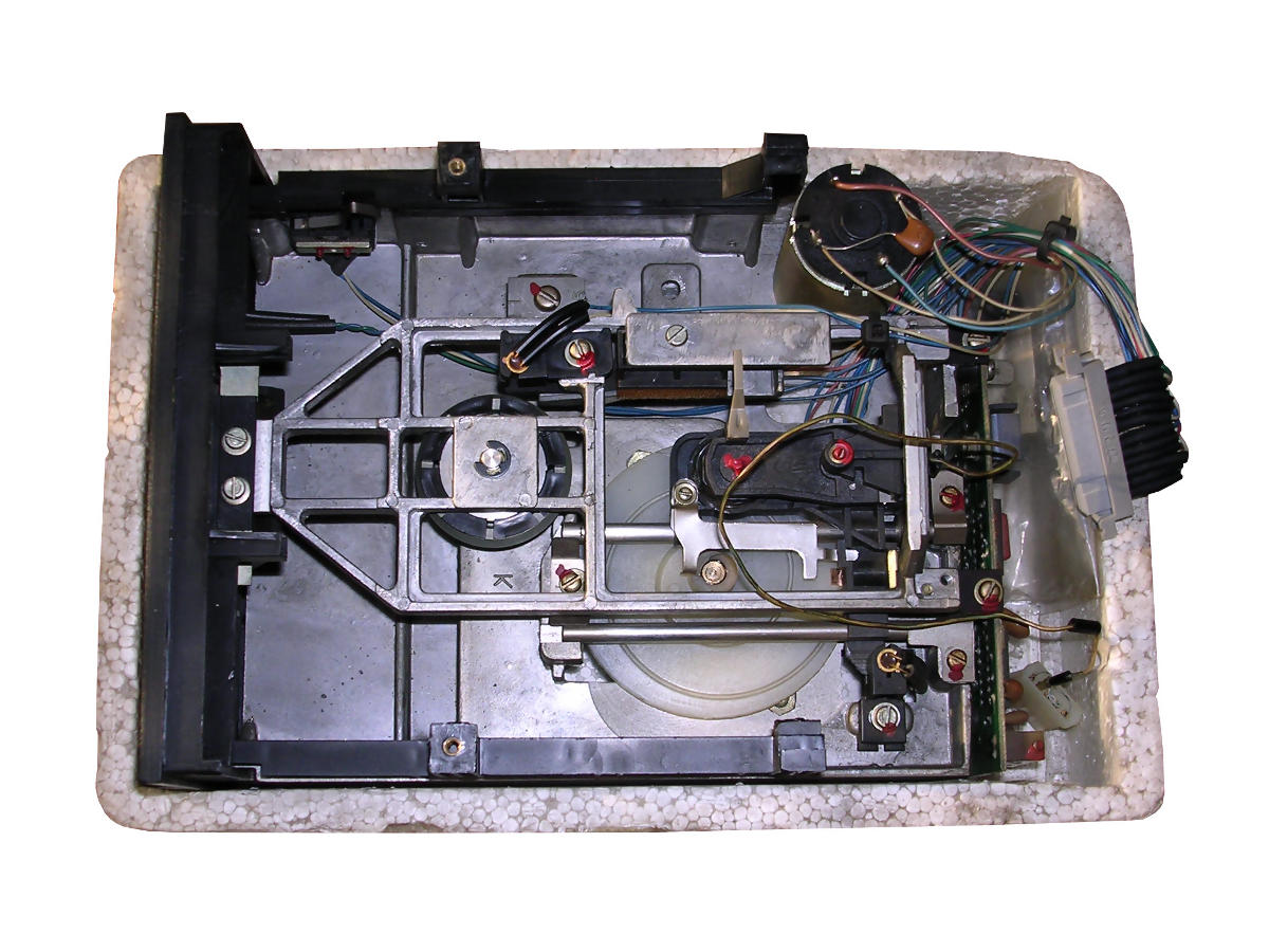 Head moving mechanism: Stepper motor, worm screw in a horizontally-placed disc.