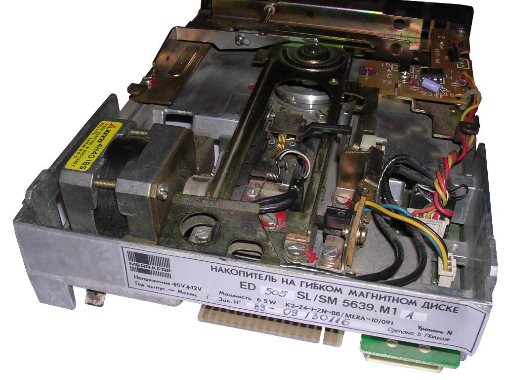 Soviet Union computers were equipped with these. They were unreliable because worm screw was not deep enough. In Poland it was used in some Soviet measuring devices, in Soviet Union in Agat computers. Interface more or less compatible with typical one, but as in all Eastern block equipment connector and pinout is different. "M1" had 40 tracks, while "M" had 35. Made in Bulgaria.
