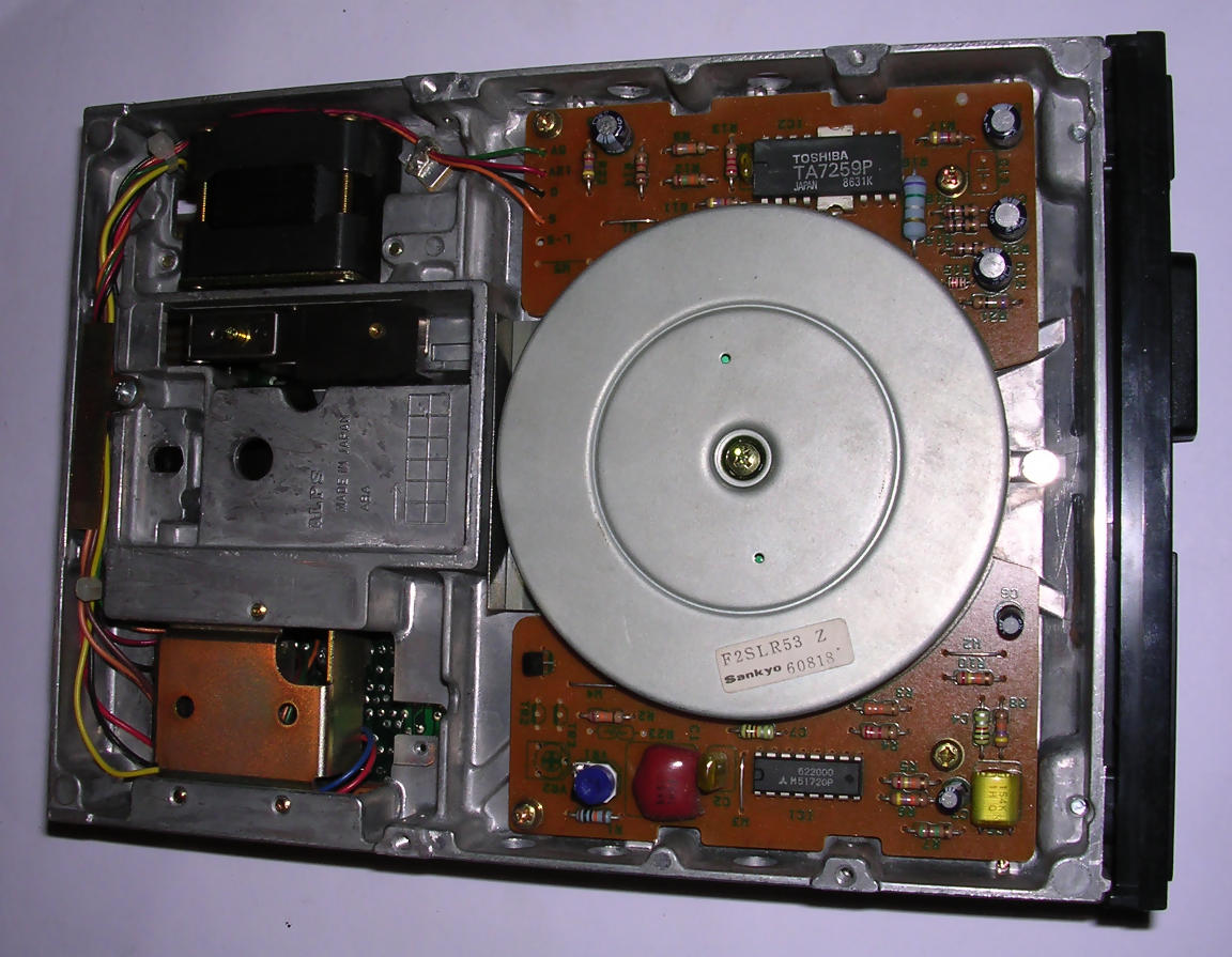 Very popular drive manufactured with different front panels, LED colors and shapes. Jumpers as in TEAC drives - many soldered, many not. Manual can explain some of them. Upper assembly not protected by any metal shielding.