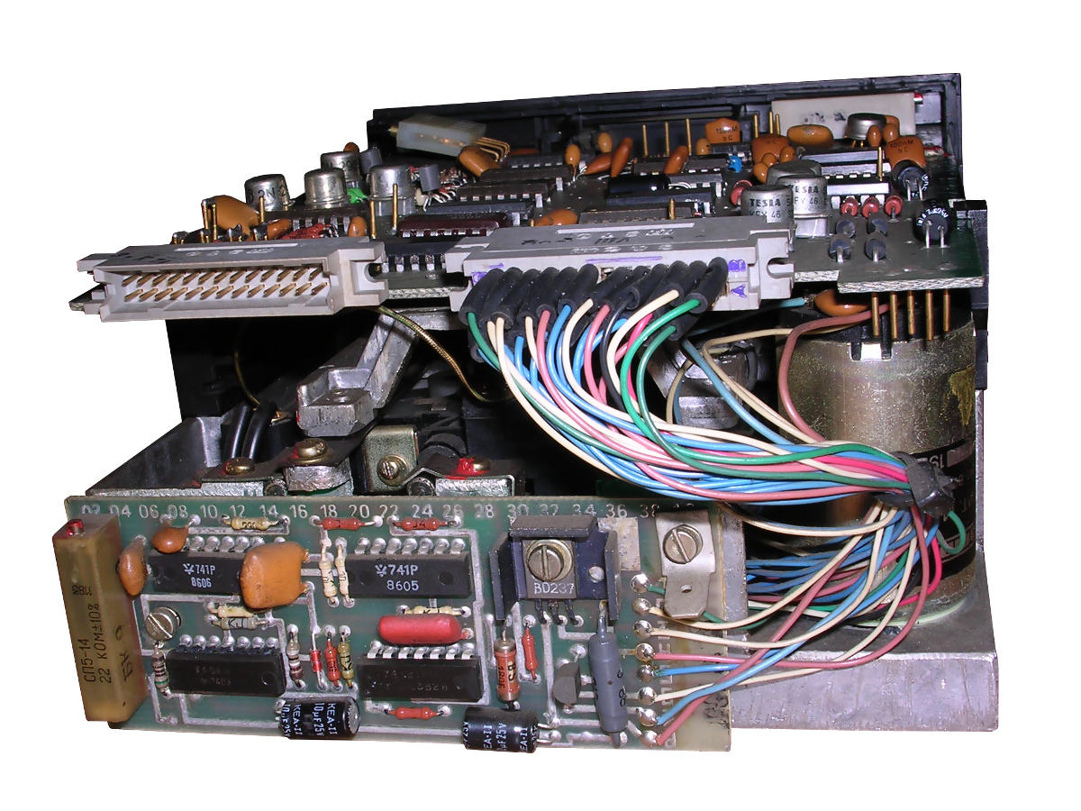 Electronics with Soviet components Motor driving electronics. Bottom - belt transmission and head motor