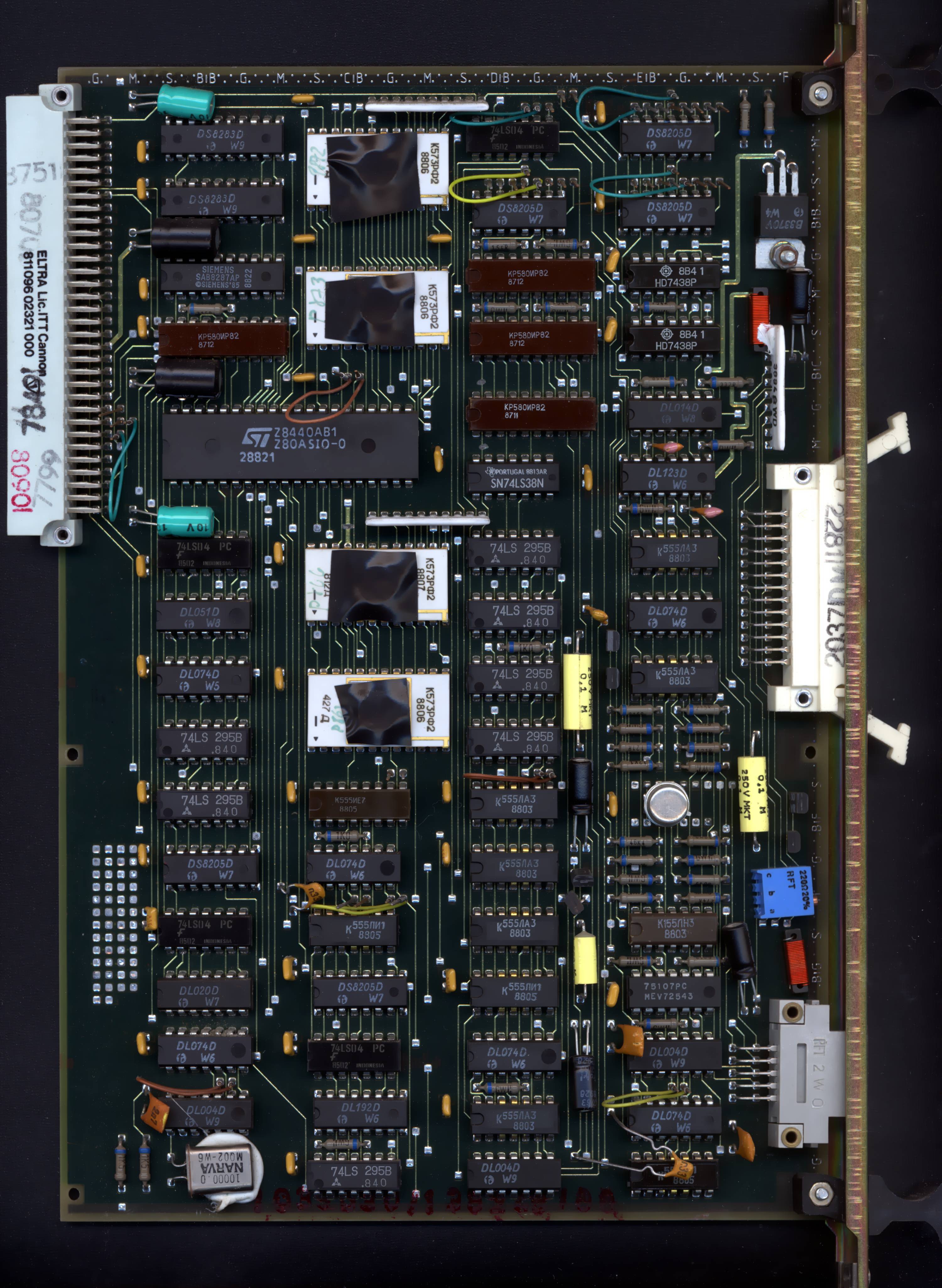 on double-Eurocard boards, so in quite modern-looking case there are 8