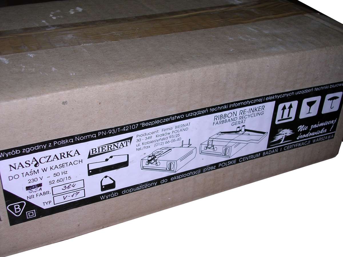| Information: This is a simple machine: An electric motor, switch and speed regulator. Additionally timer, like one used in electric ovens. Everything in a large casing with replaceable protrusions to hold many dot matrix printer ribbon cartridges in place. The motor moves the dot matrix printer ribbon, rubbing it against wheel made of soft felt. This cylinder is periodically saturated with black ink. In some units the ribbon is rubbed against two wheels, in some with one. The ink is transferred to ribbon and after few passes it can print like a new one. These devices were made in Poland and in 1990 even a Polish patent for this device was filed, and "Młody Technik" ("Young engineer") magazine wrote about it. They were commonly used by companies to re-generate printer ribbons on large scale. These ribbons were then sold as re-generated. Usually, these devices were passed for outwork jobs, so it was even cheaper for these companies as electricity was not their. |