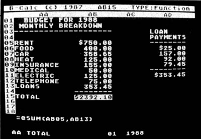 A spreadsheet so easy to use that you don't need this article! Well, almost. But seriously, BCALC has many features that make it easy to use, the kind of ease of use you enjoyed with Atariwriter.