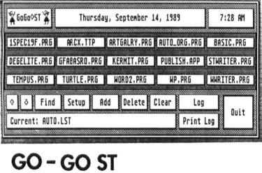 Maxwell CPU has started shipping their new ST program, Go-Go ST, which allows you to run any program with a single click of the mouse. Programs in a program list are displayed in the Go-Go window as buttons. Several program lists may be created and saved with one of them auto-loading at bootup. Also available when using Go-Go is a special "log" file that lets you keep track of how much time you've spent with each program, convenient for client-billing purposes. Go-Go ST is priced at $34.95.