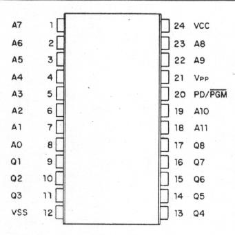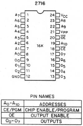 FIGURE 2. Pin Configuration and Pin Names of the Intel 2716 2K EPROM