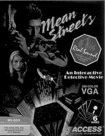 I headed back to my office, box in hand. "An interactive detective movie," the cover claimed. Well, there had to be something to Mean Streets, because the package weighed me down like sandbags an a hot air balloon. I sat down at my desk, shoved aside the falcon statue Sam Spade gave me, and spread out the package contents.