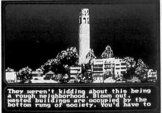 I thanked Sylvia for her time and hopped back into the speeder. After questioning a few other people, I went over my notes. So far, Mean Streets had lived up to its hype. Everywhere I went, there was a fantastic digitized background. Each character was as realistically animated as Sylvia. However, each had a distinct personality and reacted differently to my questions. Some of them volunteered information freely, some had to be bribed, and a few had to be threatened into spilling their guts. I learned early on, though, not to threaten the wrong people. Delores Lightbody, the professor's ex, didn't take kindly to my pushy behavior; the digitized picture of her kicking Murphy was enough to make me flinch in real life.
